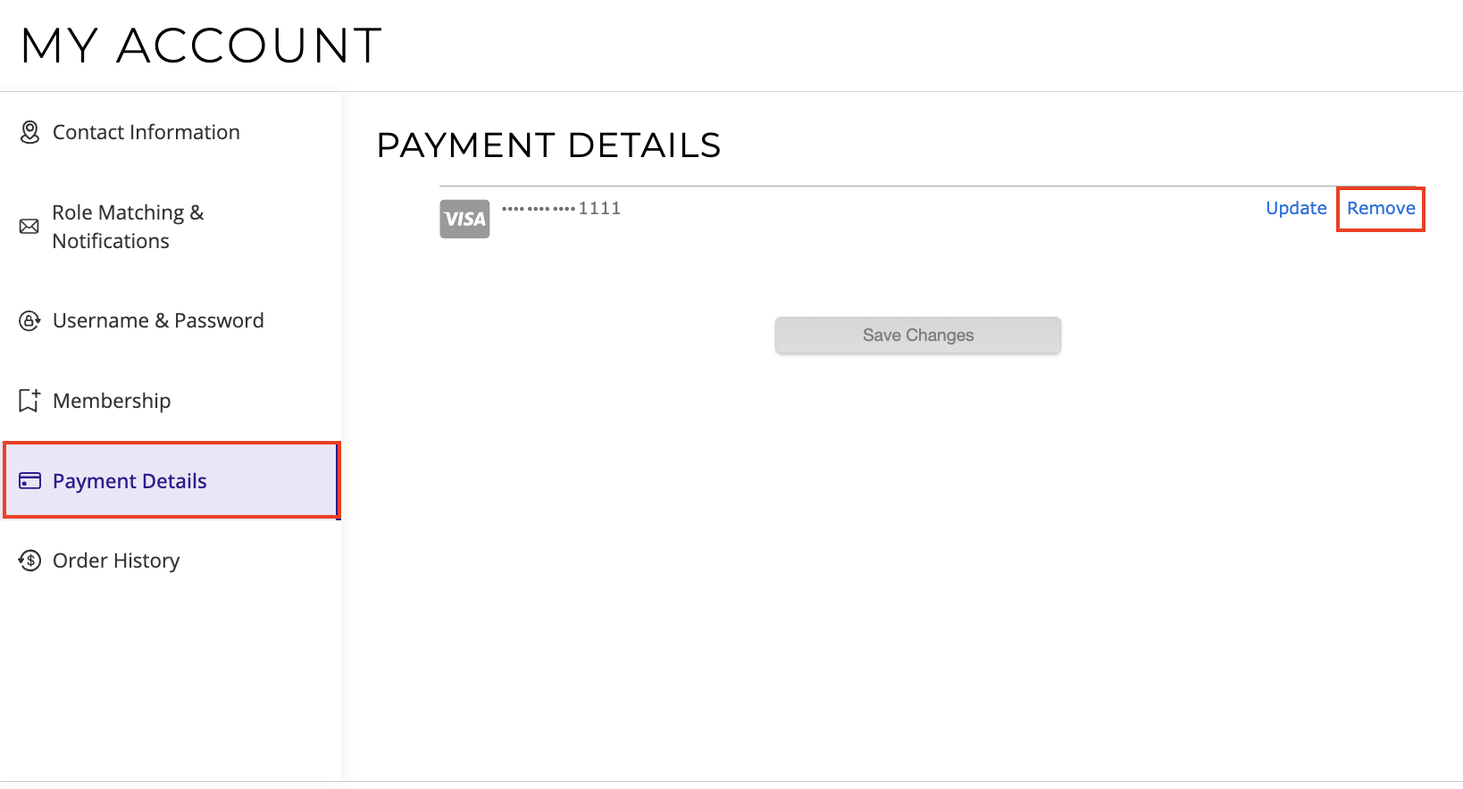 4) If you do not want to save your card, after completing your purchase, you can go to your About Me > My Account. Next click Payment Details. Lastly, click Remove. Your payment information will be removed from your account. You will receive an email before your membership expiration date reminding you that you do not have a valid form of payment saved.