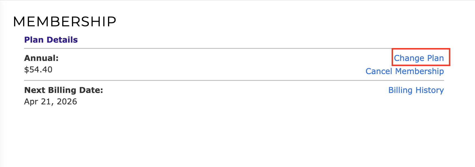 12) There is also an option to switch your membership between Monthly and Annual subscriptions. You can do this at any time by clicking on Change Plan.