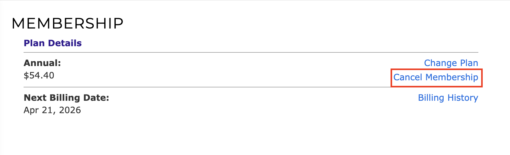 15) You can also select Cancel Membership at any time. This will prevent any future auto renewals, your membership will remain active until the end of your current billing cycle, but once your current subscription period is over, your membership will be cancelled and you will lose your benefits.