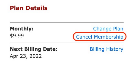 If your desktop web browser is minimized or if you are using a mobile web browser to cancel your membership, you may not be able to find the page to do so following the steps above.