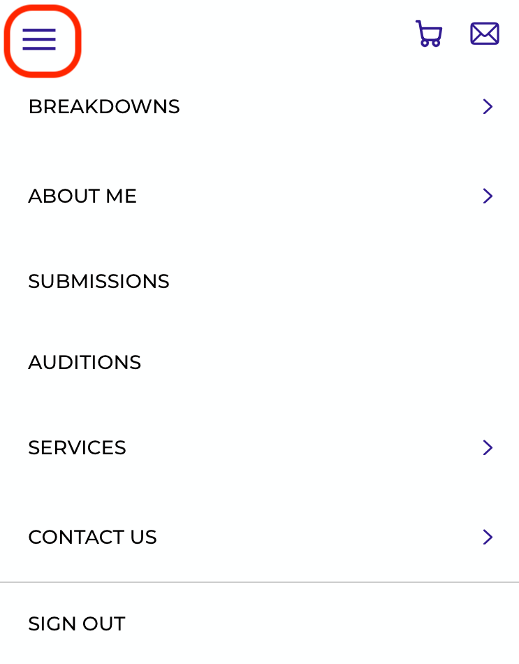1. Open the menu icon in the top left next to the actors access logo.