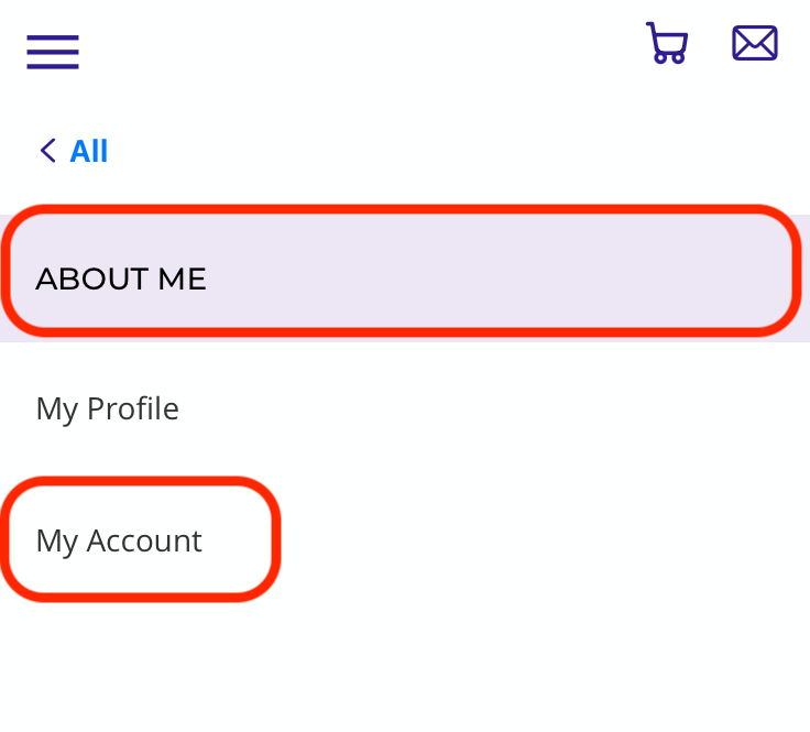 2) Once you've logged in, go to ABOUT ME and then select My Account from the drop-down menu.