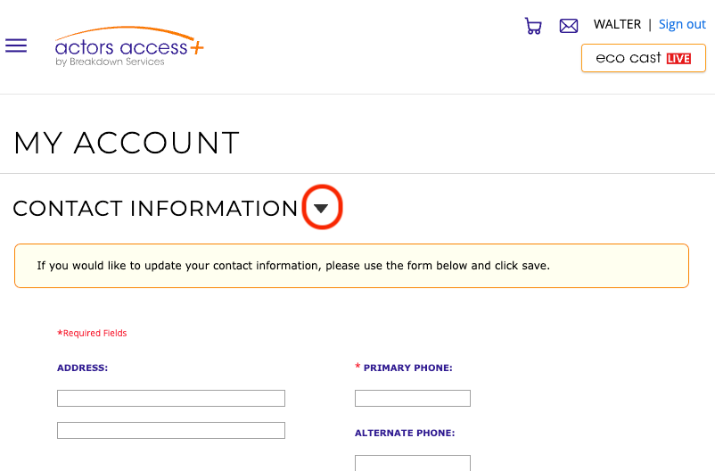 1) To begin, log into your Actors Access account.