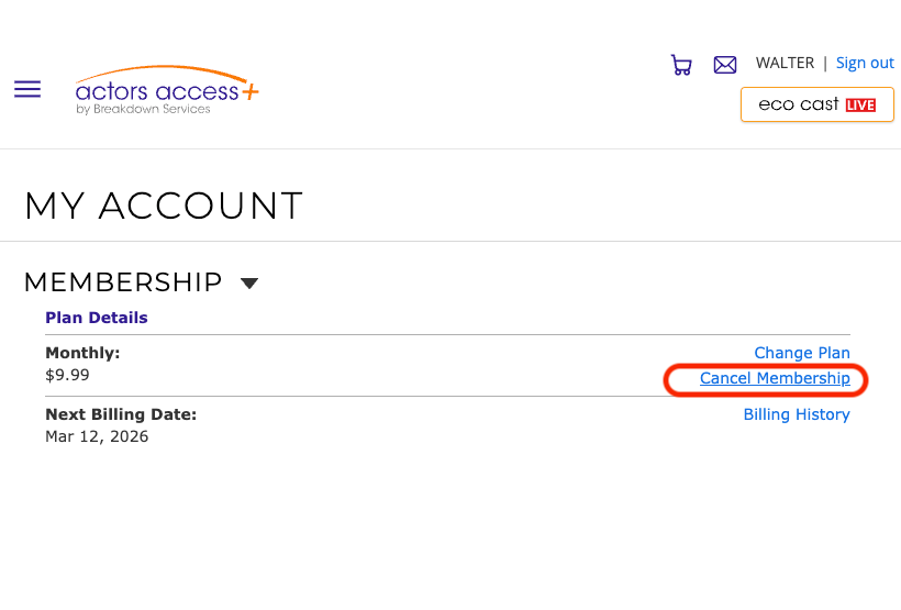 Canceling Your Actors Access Plus Subscription