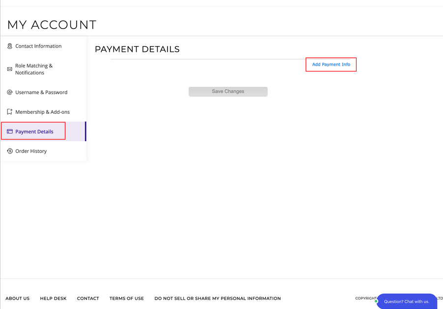 3a) If you are adding payment information for the first time, click Add Payment Info. Once entered, click Save Changes before navigating away from the page.