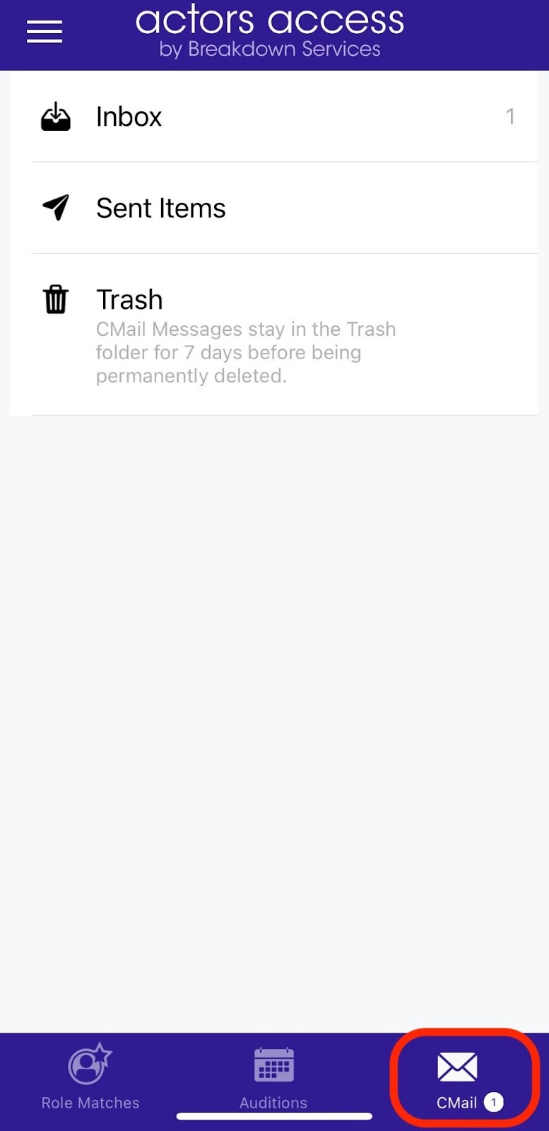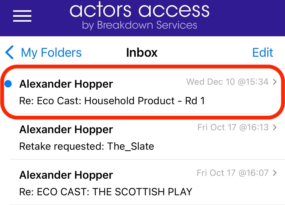 When you have a new Eco Cast Self-tape invitation, you will see a notification come up as a new CMail, when viewed through the App.