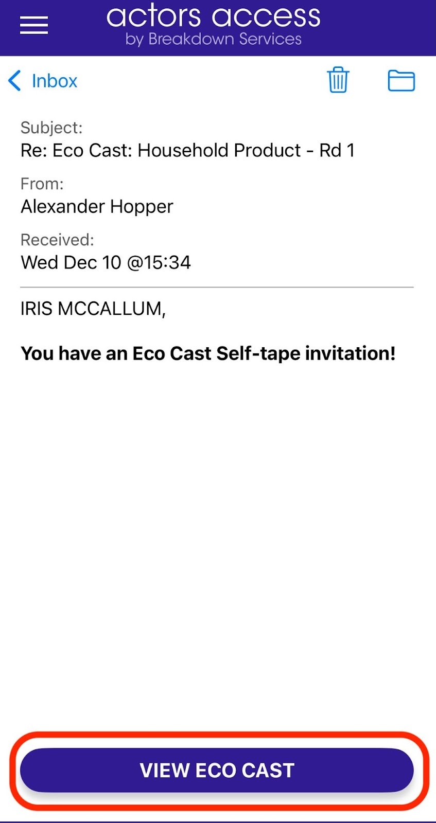 2) Then, click the subject line to open your Eco Cast self-tape invitation.