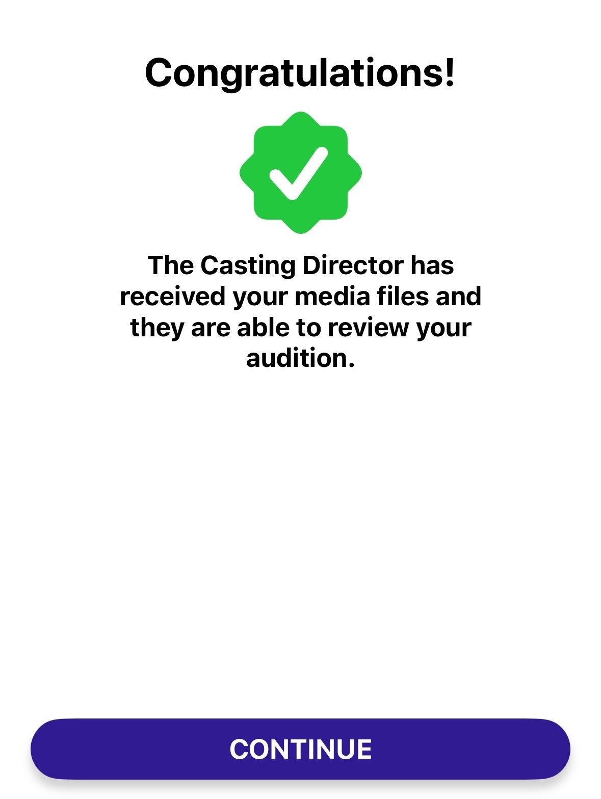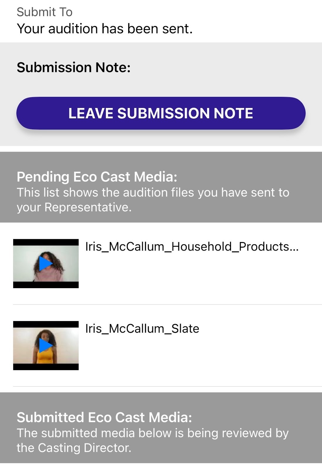 10) After you submit your files, you will receive a confirmation that your Eco Cast self-tape has been submitted.